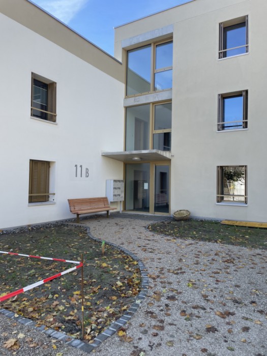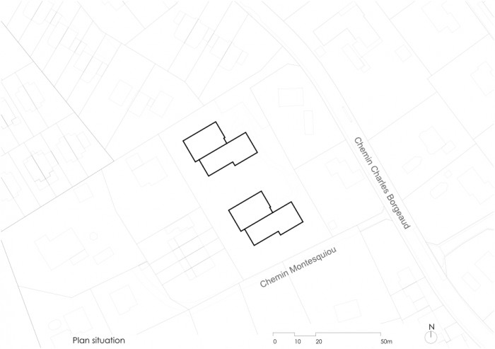 Implanté dans la zone villa à Onex, le projet propose une densification raisonnable. Conservation de l'âme de ce lieu, soigné depuis 50 ans, en avec le maintien d’un espace vert et arboré comme jardin collectif à tous les logements. Le projet utilise la pente du terrain naturel pour s’implanter en deux bâtiment d'habitats groupés de 13 logements THPE, PPE et locatifs. Utilisation de matériaux durables dont la brique isolante.